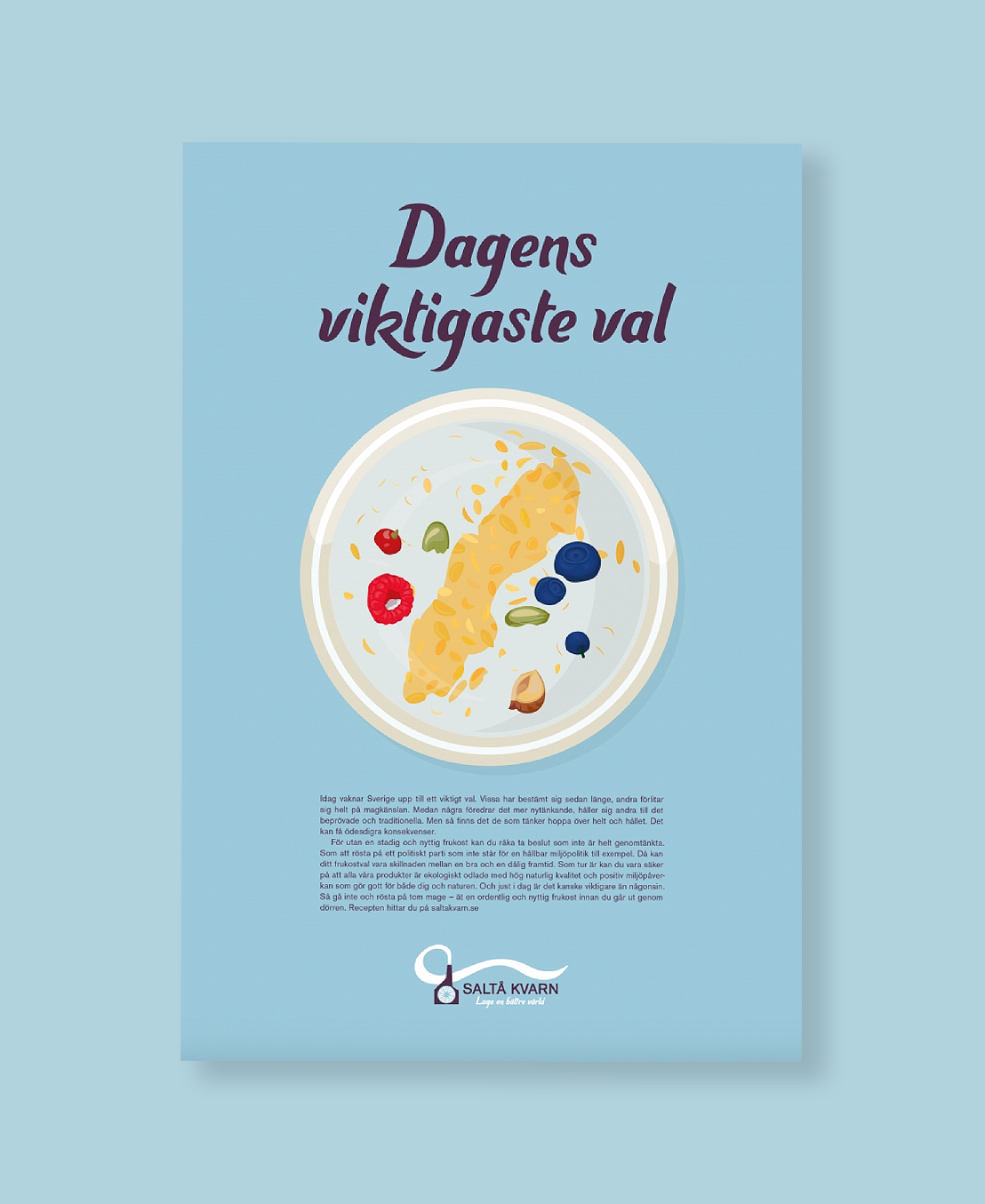 M&C Saatchi Category: Print Client: Saltå Kvarn Role: Graphic Designer Year: 2018 — Printed in Dagens Nyheter on the same day as the Swedish election in 2018, the aim was to prompt voters to consider the implications of their choices.